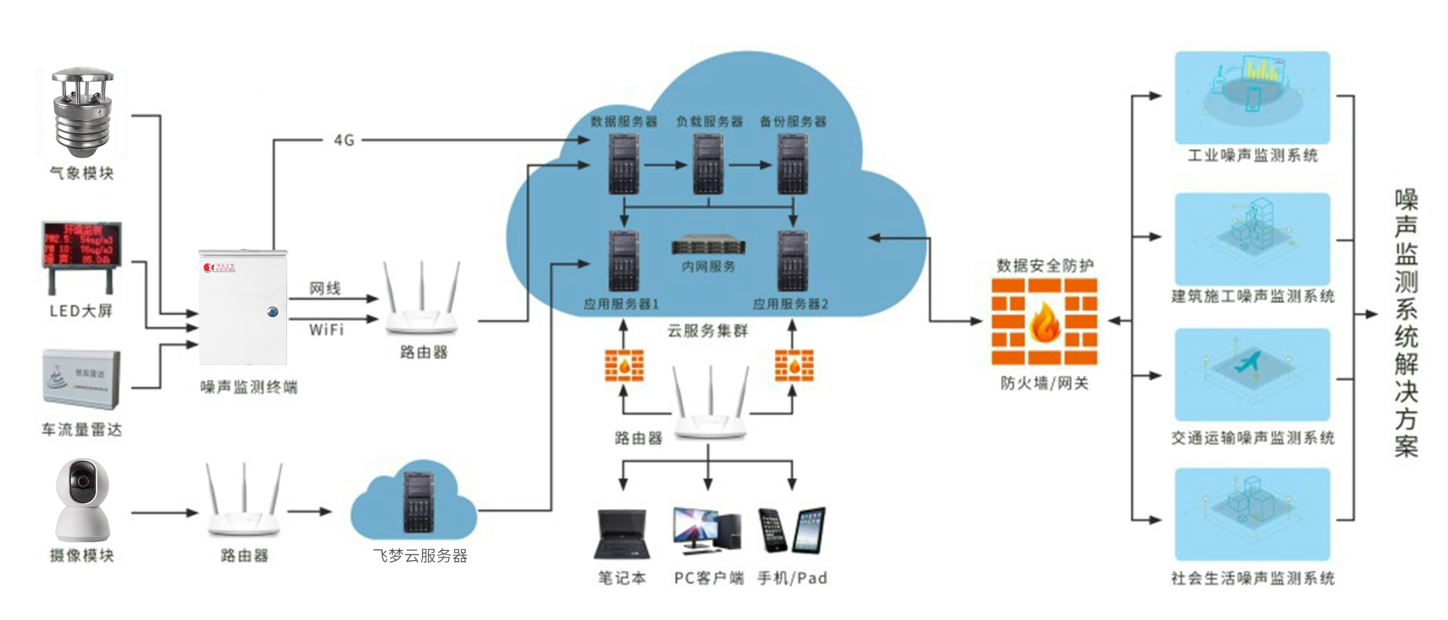 終端設(shè)備兼容:平臺(tái)可同時(shí)兼容多個(gè)型號(hào)的飛夢噪聲監(jiān)測儀器